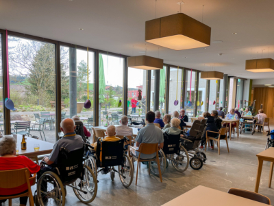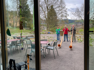 Letzte Woche gab es klangvollen Besuch durch ein Alphorn-Trio bei uns. Natürlich durften sich diese wunderbare Gelegenheit der musikalischen Untermalung die Bewohnenden nicht entgehen lassen und genossen die spontane Darbietung der drei Musizierenden in vollen Zügen.
